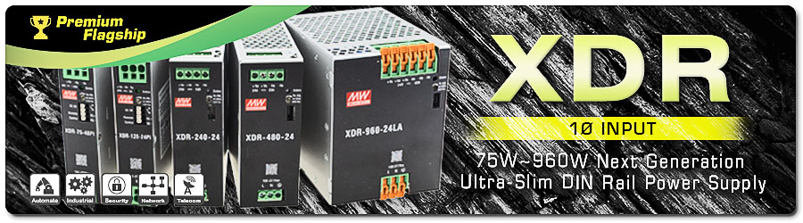 XDR Series: 75W~960W Next Generation 1Ø Input Ultra-Slim Premium Flagship DIN Rail Power Supply