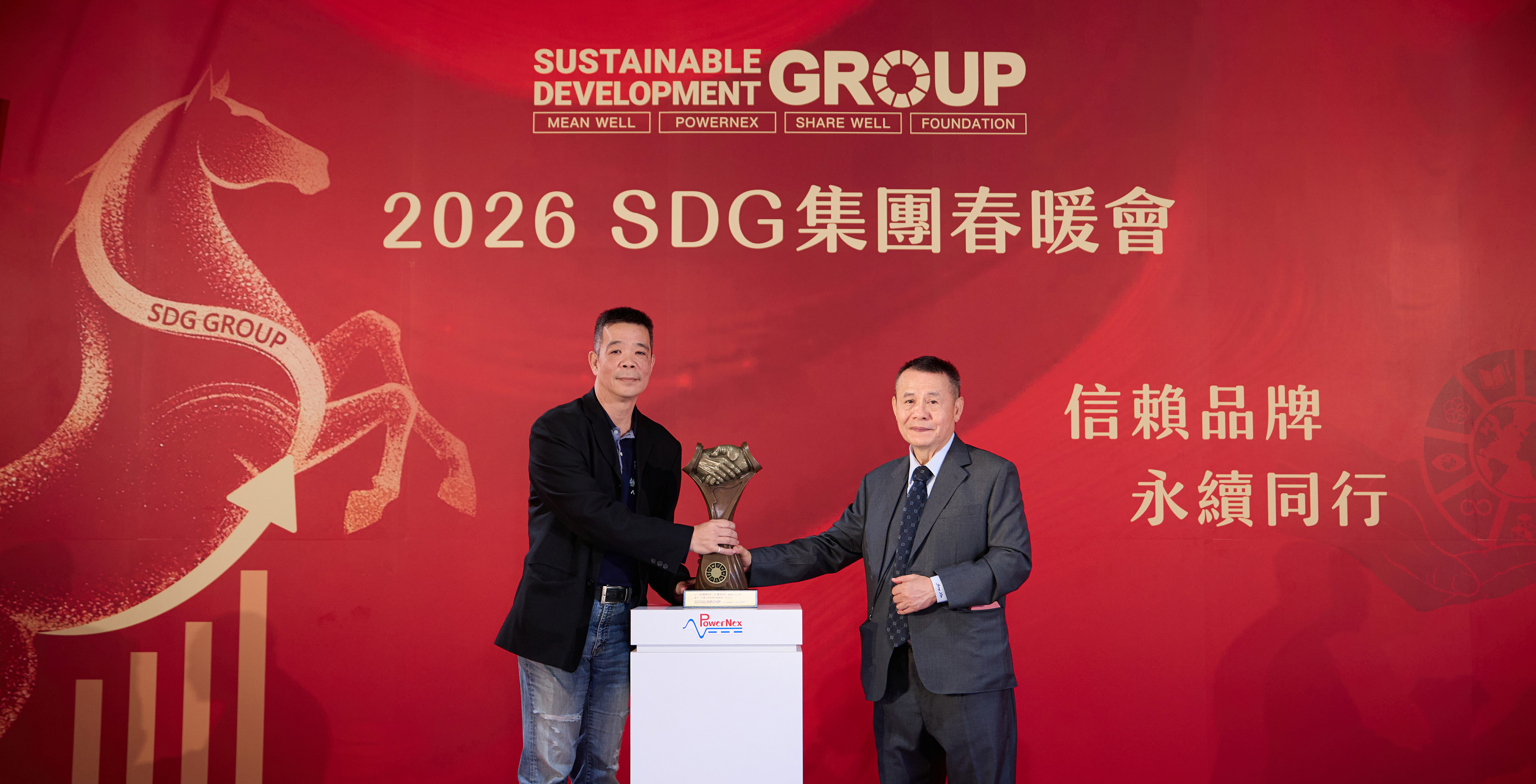 Centered around MEAN WELL, a global leader in standard power supplies, as the center, the SDG Group — comprising PowerNex, SHARE WELL, and the MEAN WELL Foundation — grandly hosted the “2026 SDG Group Spring Gathering” today (February 20, the fourth day of the Lunar New Year). The event marked the Group’s official entry into a new era of brand growth.